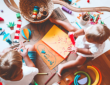 Massinhas, tintas e materiais que incentivam a criação livre.